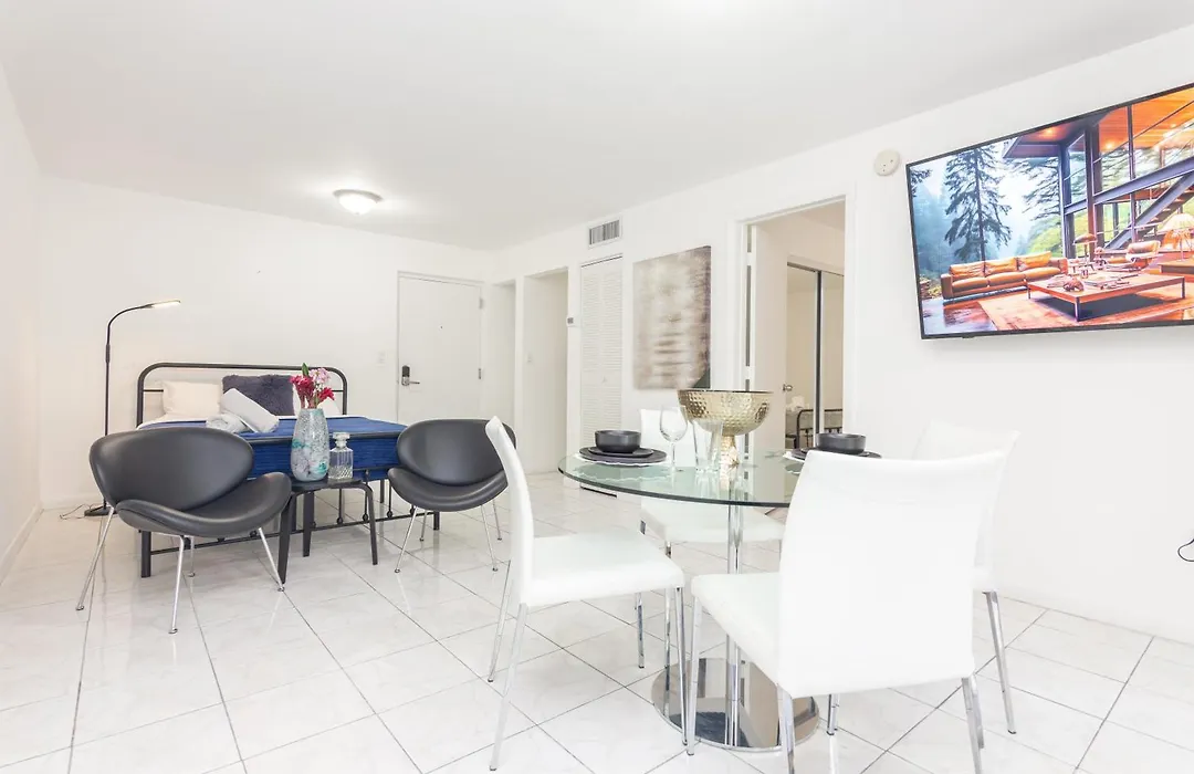 This property offers a fully furnished kitchen with a microwave, a fridge, and glassware, along with coffee/tea making machines. Northeast 2nd Avenue & Northeast 24th Street bus stop is right next to the 79 m² One Bedroom Apartment - With Parking & Balcony - Heart Of Wynwood. There is a sunny patio as a spot to unwind.